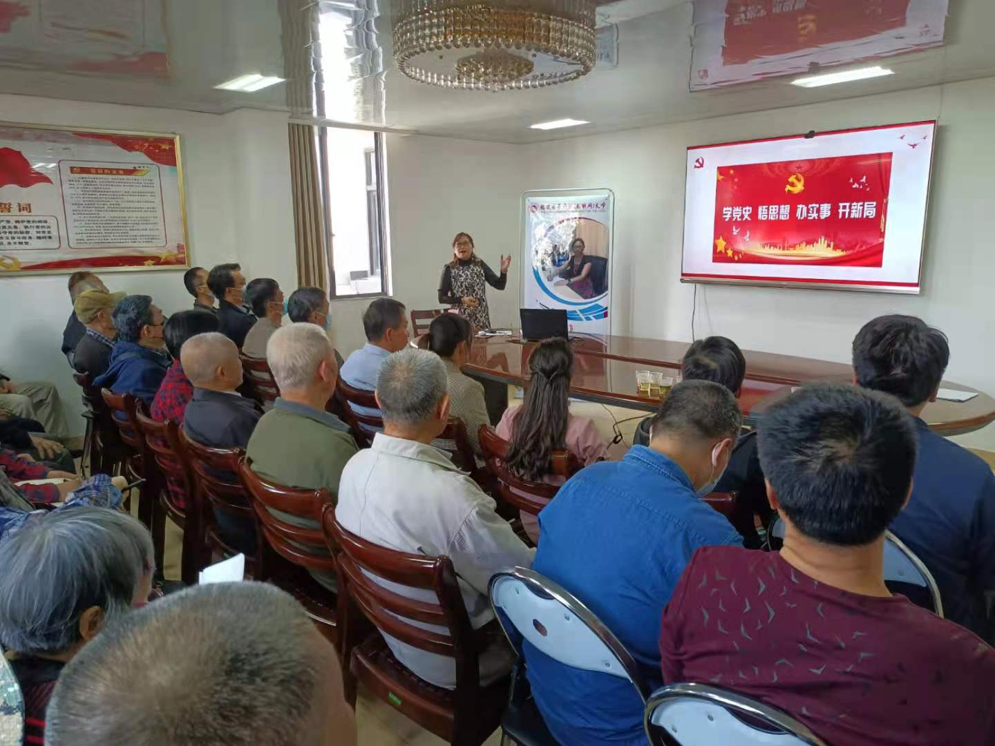 系列讲座第二讲主题为“长征组歌:用歌声追忆历史”,由福建开放大学教授汪继红主讲。汪继红以长征组歌中十大乐章为切入点,向老年朋友讲述长征路上十个感人肺腑的红军故事。用故事缅怀先烈,用歌声追忆历史。讲座现场老年朋友认真学习,做好笔记,全体起立齐唱《没有共产党就没有新中国》,将现场气氛带到了高潮。