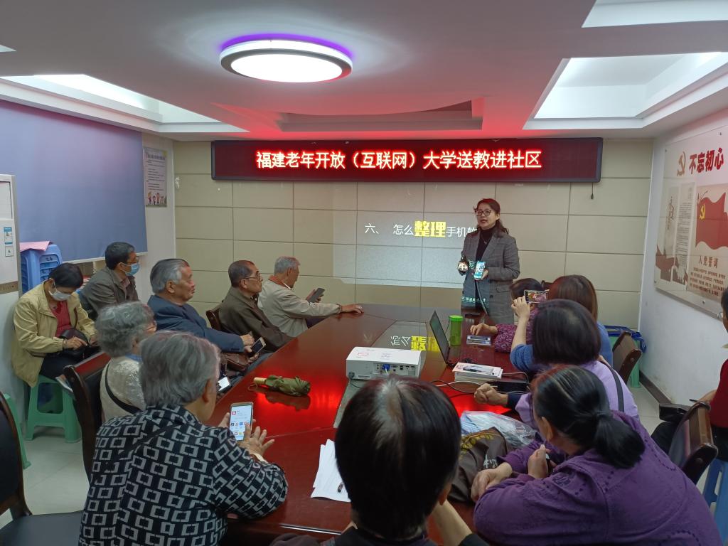 据悉,福建老年开放(互联网)大学为扩大老年教育资源供给,满足老年人学习需求,邀请党史、养生保健、智能手机应用、应急救助等方面的专业教师,定期为社区老年人开展系列公益讲座,打造“送教助老”老年教育新品牌,积极营造“老有所教、老有所学、老有所乐、老有所为”的良好社会氛围,加快推进我省老年教育事业的发展。
