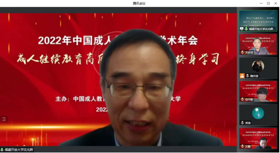2022年12月16日,由中国成人教育协会主办、上海师范大学承办的以“成人继续教育高质量发展与全民终身学习”为主题的中国成人教育协会学术年会以线上和线下相结合的方式在上海师范大学举行。我校副校长沈光辉教授在线出席会议并作主题报告。