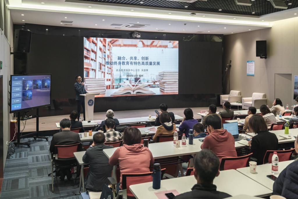 为了贯彻落实党的二十大报告提出的“推进教育数字化,建设全民终身学习的学习型社会、学习型大国”,构建形式更加灵活、资源更加丰富、学习更加便捷的全民终身学习体系。12月13日,2023年福建省终身教育管理人员研修班在学校举办,党委副书记、校长吴国荣,副校长沈光辉,省教育厅职业教育与成人教育处主任科员黄颖,上海开放大学航空运输学院、长宁区社区学院督学宋亦芳教授,教育部社区教育研究培训中心原常务副主任周延军教授,上海市教育科学研究院国卉男副研究员以及全省各社区大学(学院)、老年开放(互联网)大学负责人共100余人参加开班式,开班式由沈光辉副校长主持。