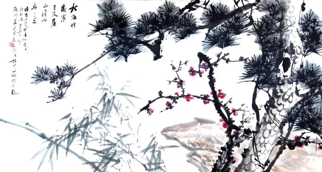 画家们共同合作“岁寒三友图”